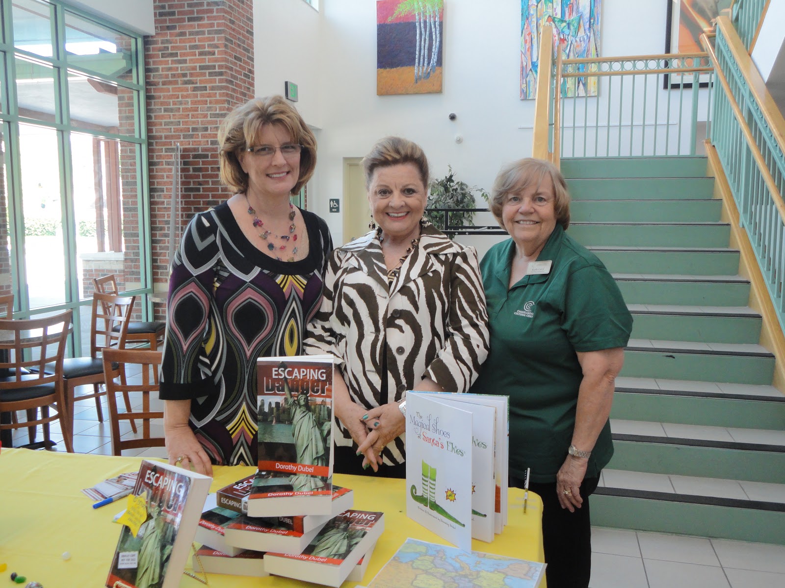 | Author Dorothy Dubel had a fabulous afternoon selling her book Escaping Danger at CHOCOLATE SUNDAY hosted by Tampa Bay Woman Newspaper at the Carrollwood Cultural Center in Tampa FL. 3/18/2012. Shown here from left, publicist Dawn Hudson, Dorothy Dubel and CCC Volunteer Coordinator Ruth Levy. Photo credit Jaqi Levy. |